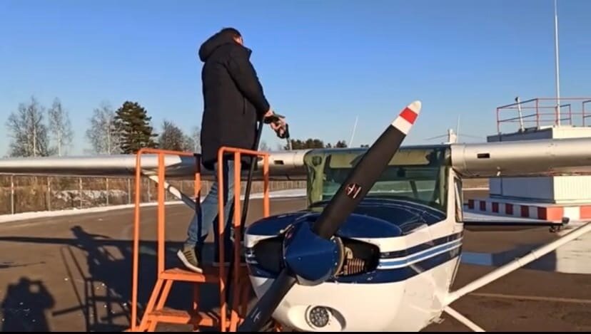 Заправка топливом самолета Cessna 152 (авиационным бензином 100LL). Видео снято для примерного понимания и ознакомления с заправкой ВС.