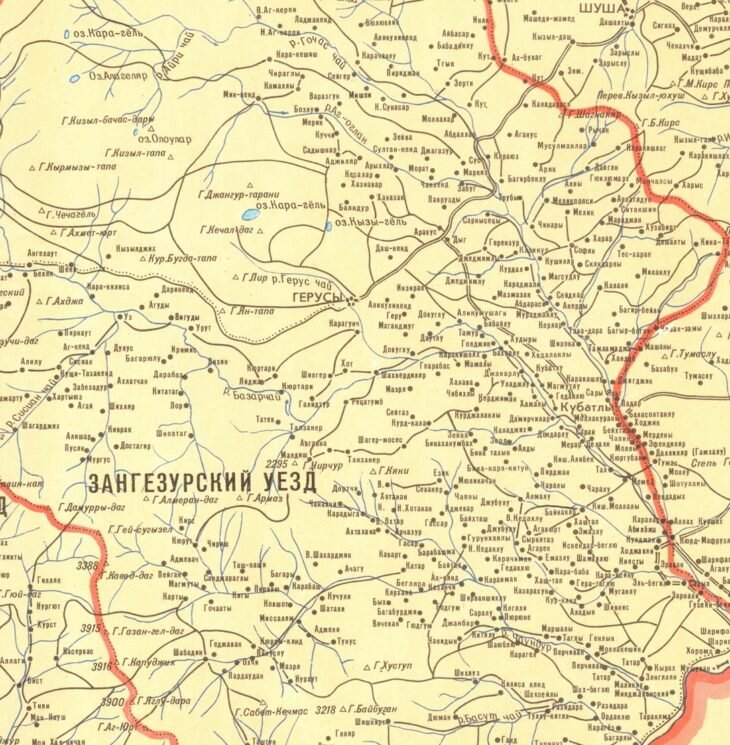 В результате давления Москвы на Азербайджанское правительство в 1921 г. Армении передали западную половину Зангезура. Эти азербайджанские земли были старательно очищены армянами от азербайджанского элемента для создания чисто армянских территорий, из которых и сложилось армянское государство. Таким образом, пограничную линию провели сугубо по новой этнической границе, т. е. Армения была создана именно в этнических пределах тех земель, которые дашнаки успели очистить от азербайджанцев и “обармянить” их.