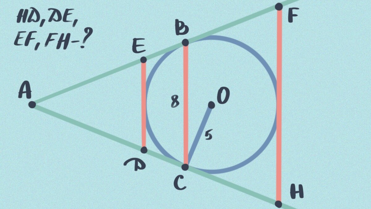 В некоторый угол вписана окружность радиуса 5. Хорда, соединяющая точки касания, равна 8. К окружности проведены две касательные, параллельные хорде. Найдите стороны полученной трапеции.