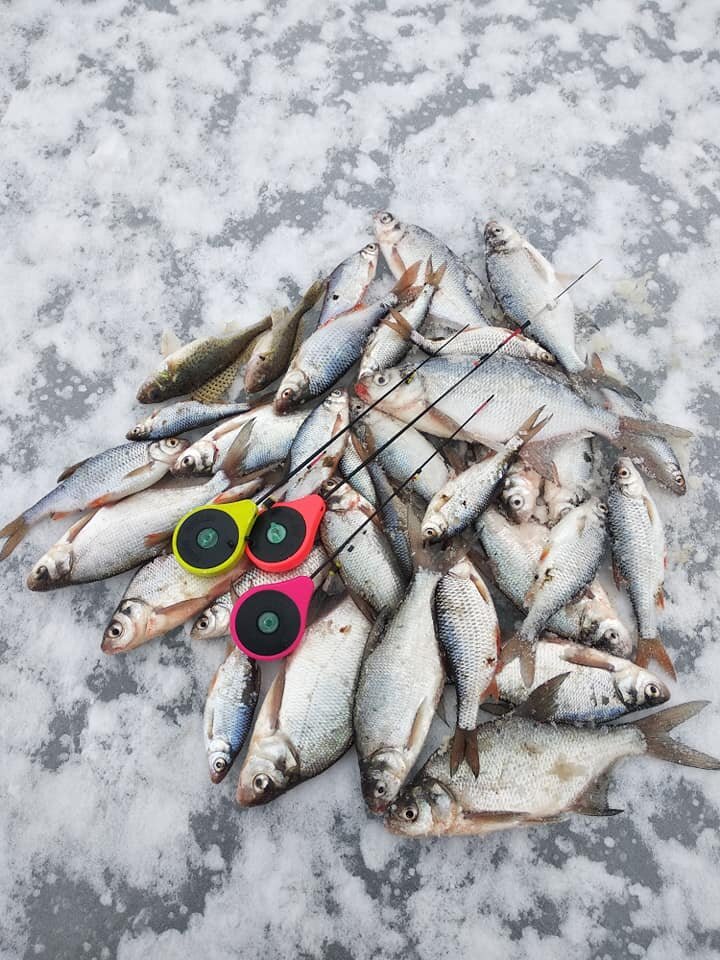 С первого прохода со всех лунок был пойман лишь один подлещик на светлой прикормке и пару плотвичек на чёрной. На остальных лунках изредка проскакивал мелкий окушок. Со второго прохода заработало уже две базы, где на Silver Glory подошёл подлещик, а на Dark Power по-прежнему проскакивала лишь плотвичка. Как оно в принципе и ожидалось...