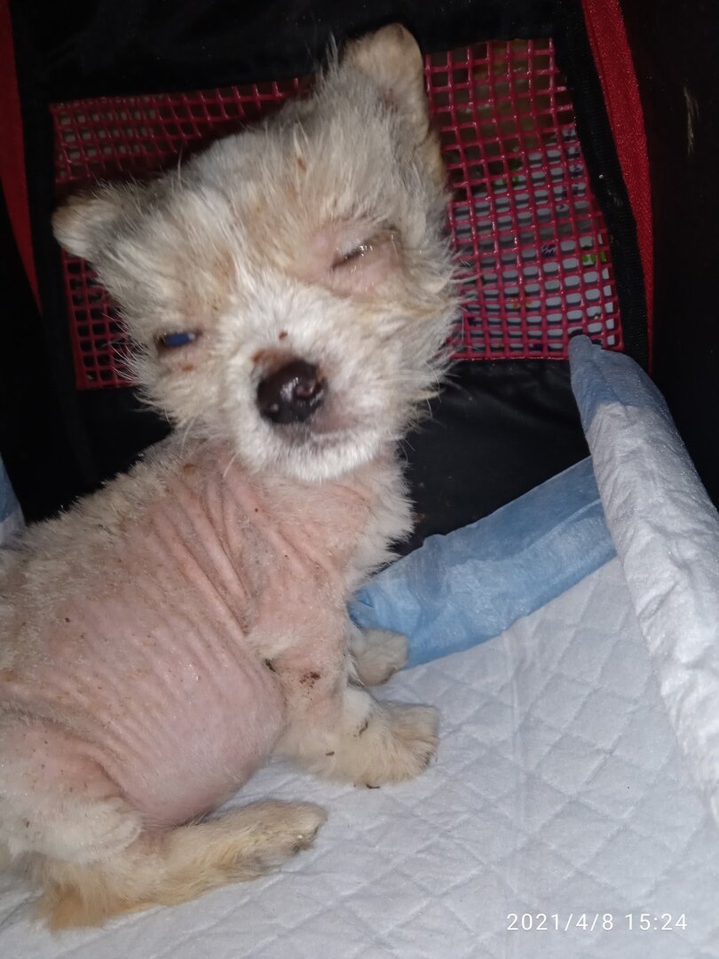 Рахит, слепота, анемия, запор и много всего по мелочи. 6 апреля этого милого малыша принес очевидец Ирине Быковой просто посмотреть. Просто посмотреть не получилось, щенка Ирина забрала.