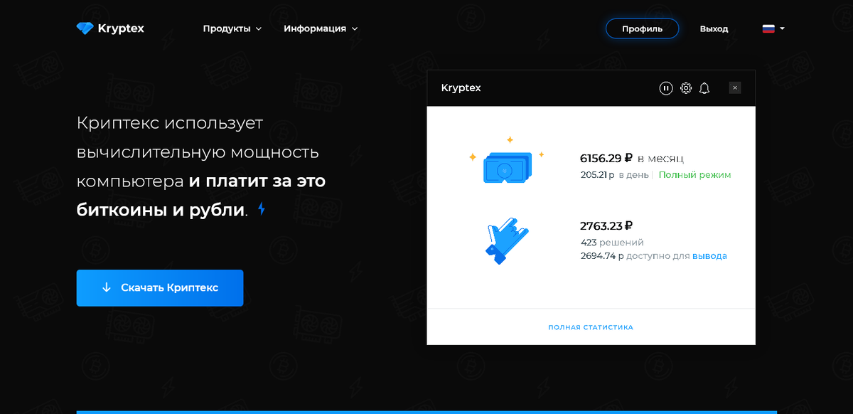 Сегодня мы рассмотрим проект, который позволяет зарабатывать деньги с помощью майнинга криптовалют. Речь пойдет о KRYPTEX. Вот их сайт www.kryptex.org https://www.kryptex.org/ . Многие спрашивали мое мнение по поводу этого проекта (платит или нет). Я тестировал его пару недель. Сейчас поделюсь своими впечатлениями.