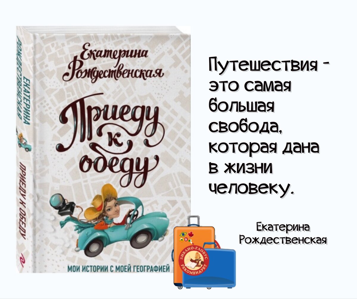 Екатерина Рождественская – уже очень значимый современный писатель, плюс замечательный фотохудожник, плюс дочь известного поэта Роберта Рождественского. Последнее – скорее бонус к ее личным и несомненным талантам, тот редкий случай, когда природа на детях совсем не отдохнула! «Приеду к обеду» - книга про путешествия и еду, уже не первая, связанная с впечатлениями Екатерины о лучших днях в ее жизни, когда можно было с головой погрузиться в незнакомый и интересный мир. «Путешествия, на мой взгляд,- это самая большая свобода, которая дана в жизни человеку. Ездить, смотреть, наслаждаться, делиться этими наслаждениями со всем миром. И не только наслаждениями, но и свободой! Я путешественник со стажем, полжизни пробыла вне дома, в поисках впечатлений, историй, фотографий, опыта, общения с давно уехавшими друзьями, просто отдыха, просто леса, просто моря или гор», – делится с нами Екатерина. Сейчас ездить куда-либо сложно – время такое. Но оно обязательно пройдет! Давайте пока попутешест