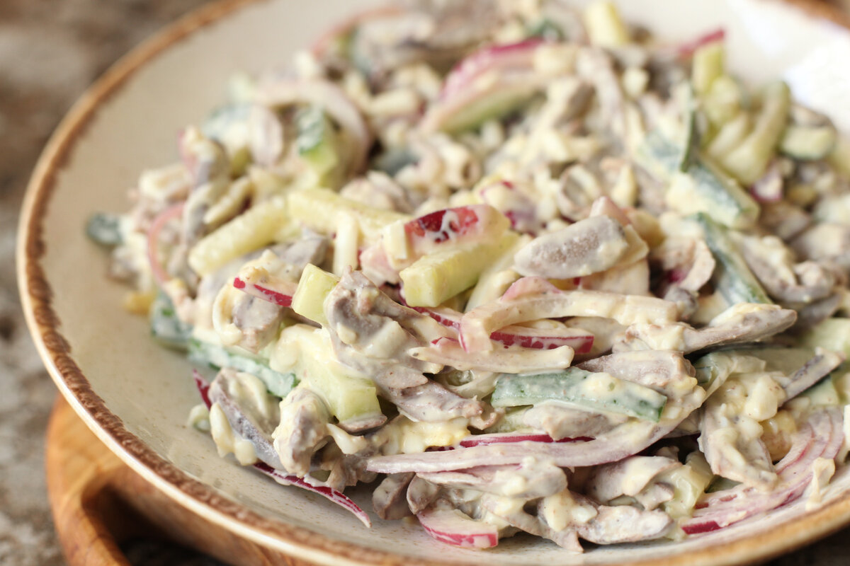 В моей же семье куриные сердечки считаются деликатесом! Сегодня хочу поделиться с вами рецептом необыкновенно вкусного салата с куриными сердечками, который готовлю уже много лет.