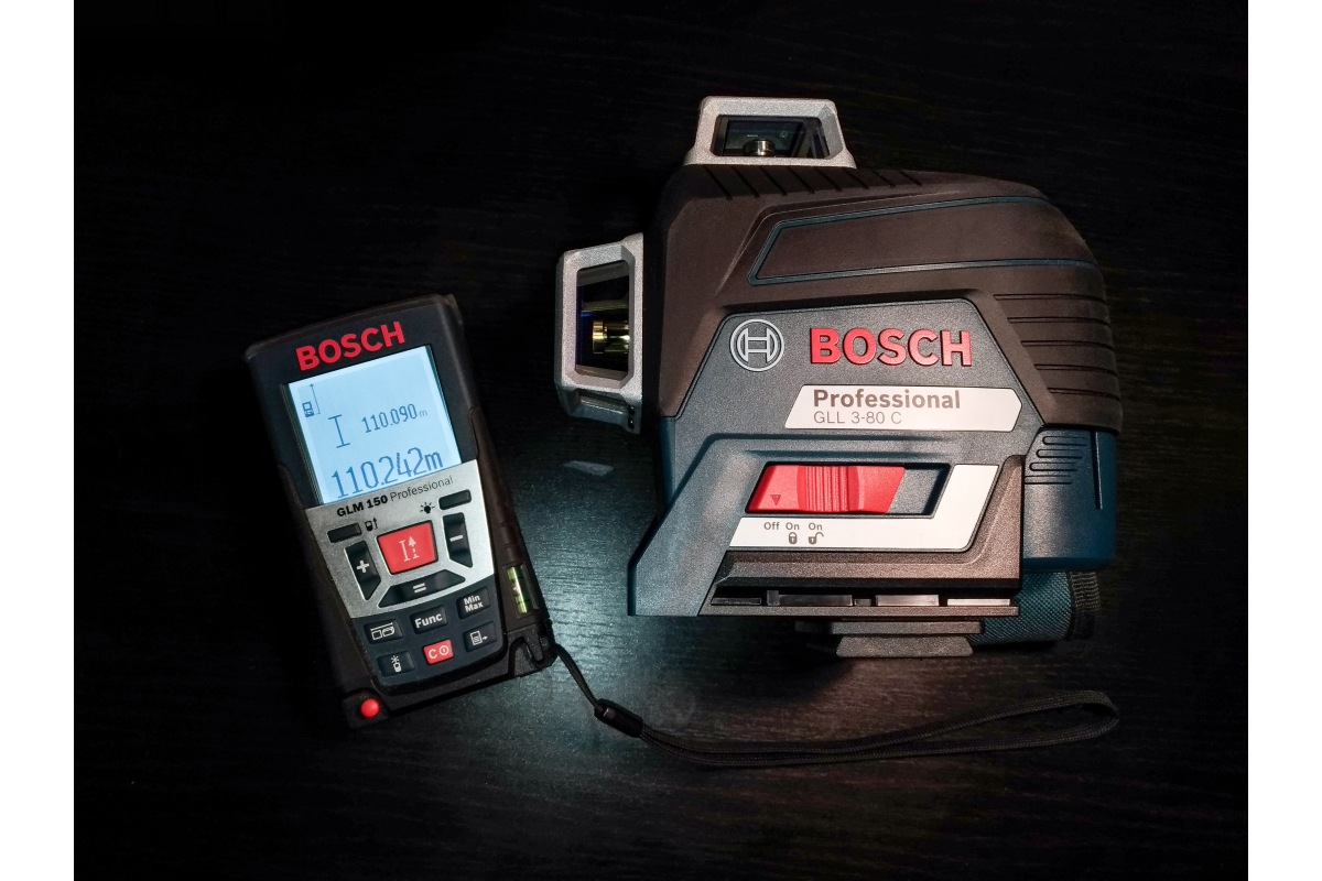 Лазерный нивелир BOSCH GLL 3 - 80 – это уникальная разработка компании BOSCH, занимающей лидирующие позиции на рынке лазерных уровней. Особенность нивелира и его преимущества Построение трёх плоскостей, одной горизонтальной и двух вертикальных, с полной развёрткой на 360°, позволяет эффективно использовать лазерный уровень BOSCH GLL 3 - 80 при выполнении таких работ, как: Укладка плитки. Отделка стен и монтаж перегородок. Установка гипсокартонных конструкций. Разметка коробов для коммуникаций, дверных и оконных коробок. Построение плоскостей может осуществляться как трёх одновременно, так и каждой по отдельности. Вы также сможете строить наклонные плоскости под любым углом, отключив автоматический компенсатор. Особенности, характеризующие лазерный кросслайнер BOSCH GLL 3 - 80: Высокая точность выравнивания: ±0,2 мм на 1 м расстояния. Высокая скорость выравнивания: через 4 секунды после включения вы получите идеально горизонтированную линию. Диапазон работы компенсатора составляет ±4°. Дальность действия BOSCH GLL 3 - 80 достигает 40 м без специального оборудования и до 80 м с приёмником лазерного излучения. Для обеспечения автогоризонтирования лазерный уровень BOSCH GLL 3 - 80 оснащён встроенным магнитно-маятниковым компенсатором, который за считанные секунды производит установку уровня в горизонт и сохраняет рабочее положение оси прибора при толчках и вибрациях. Для построения наклонных линий и при транспортировке прибора маятник можно зафиксировать. Особенности установки при эксплуатации Компактный, лёгкий лазерный построитель BOSCH GLL 3 - 80 крайне комфортен в использовании. Благодаря прорезиненным вставкам на пластиковом корпусе лазерный уровень удобно лежит в руке и легко перемещается с места на место. Конструкция прибора предполагает несколько вариантов установки: На профессиональный штатив – для этого предусмотрено отверстие с резьбой 5/8 дюйма. На фирменный держатель ¼ дюйма, оснащенный микролифтом с фиксатором положения, который может навешиваться на стену, крепиться на трубе с помощью мощных магнитов и устанавливаться на ровную поверхность, опираясь на выдвигаемые опоры. Лазерный нивелир, размещенный на кронштейне, может вращаться вокруг своей оси, что значительно повышает удобство и функциональность в эксплуатации. Купить лазерный уровень BOSCH GLL 3 - 80 целесообразно для выполнения комплексных строительных, разметочных, ремонтных и монтажных работ в помещениях любой площади.