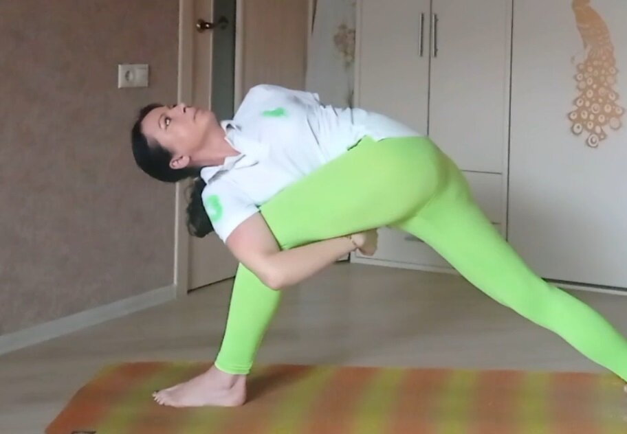 К таким асанам относится и Паривритта Паршваконасана, или поза скрученного бокового угла.