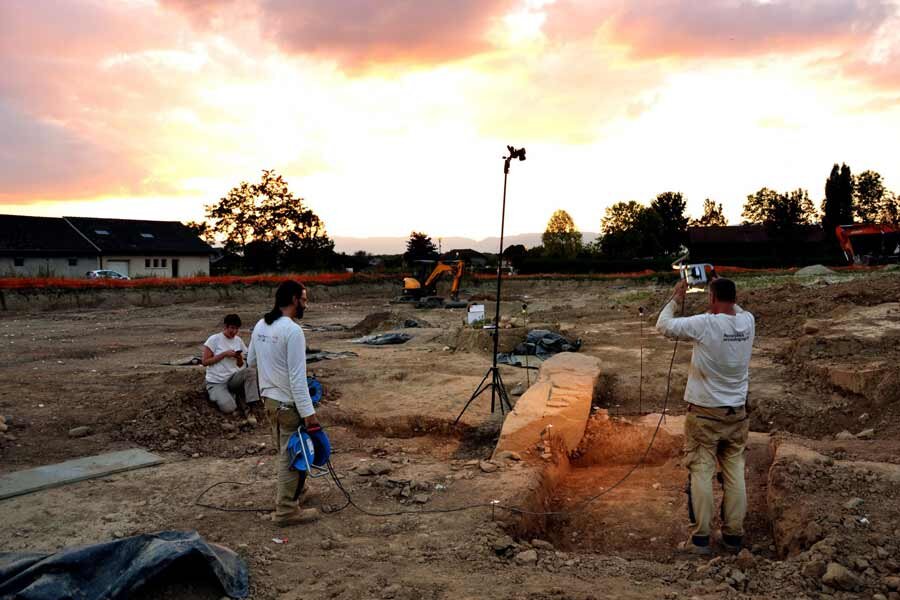 Верхнее изображение: команда RTI провела фотограмметрическую съемку мегалитов, найденных во Франции, в том числе большой плиты, увиденной здесь. Источник: Anicet Konopka / INRAP