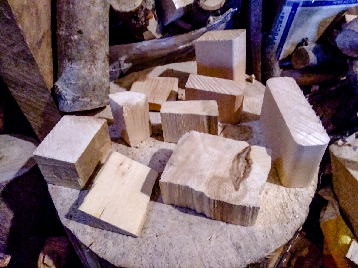 Топор заточен (а это будут именно топорные ангелы), дерево на выбор: липа, осина, берёза и даже неяркий кусочек ольхи - теперь час-полтора рубки и пять минут промасливания - это всегда восхищающее меня действо - рождение ангела.