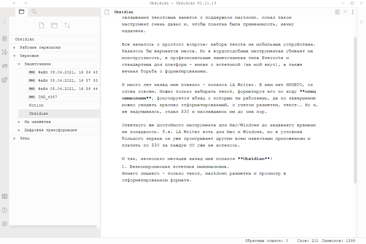 Несколько месяцев назад мне попался Obsidian!