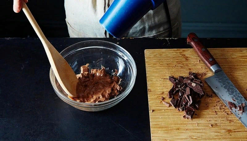 А вот этот лайфках, несмотря на всю его странность, по утверждению многих экспериментаторов работает безотказно. В общем, если вы решили растопить шоколад, но у вас нет микроволновой печи и вам ой как лень возиться с водяной баней, воспользуйтесь феном. Да-да, феном, тем самым, которым сушите волосы. Шоколад разломать на равномерные кусочки средней величины, переложить в жаропрочную посуду и,