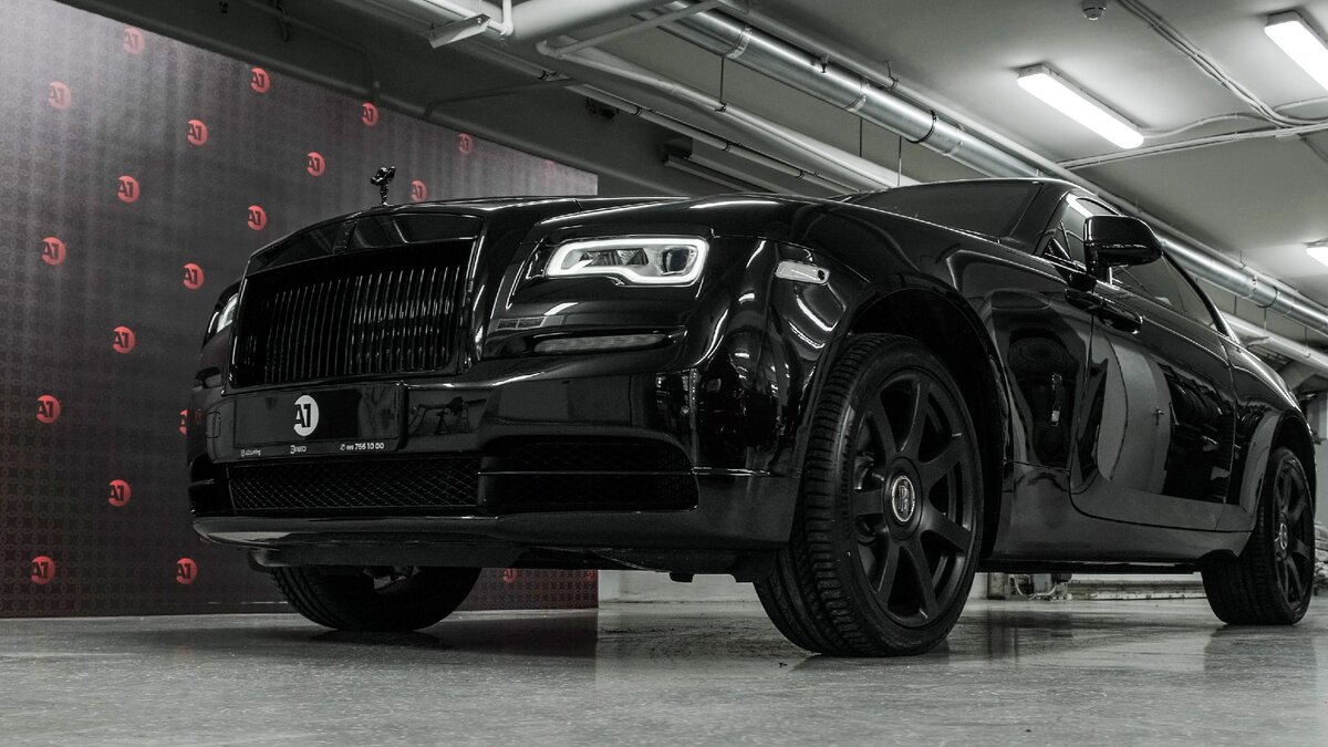 Сегодня покажу самый обычный, если это слово вообще применимо к этим машинам, Rolls-Royce Wraith, который прошел небольшой внешний тюнинг от А1, а именно, все хромированные элементы экстерьера стали черными.