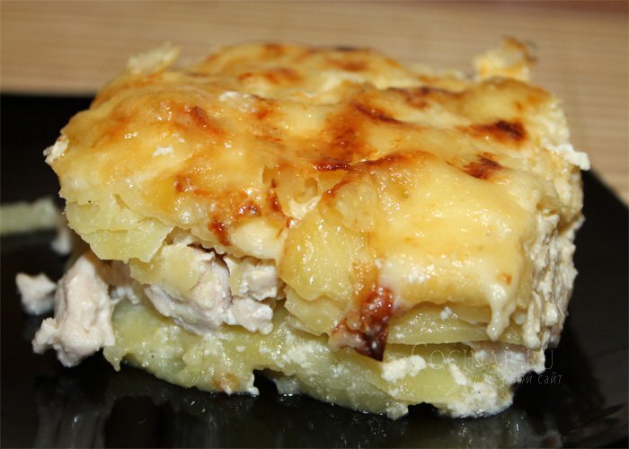 5. Перекладываем курицу к картофелю.