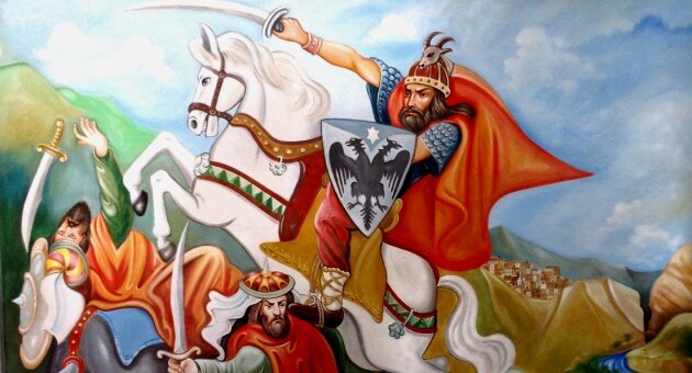 В 1953 году на студии Мосфильм была снята историческая лента под названием «Великий воин Албании Скандербег». Главный герой картины лицо историческое. Это Георгий Кастриот, сын албанского князя, который еще мальчиком был взят заложником к турецкому султану. Воспитывался там как воин и верно служил ему 20 лет. Любовь к родине заставляет Георгия повернуть свой меч против поработителей своего народа.