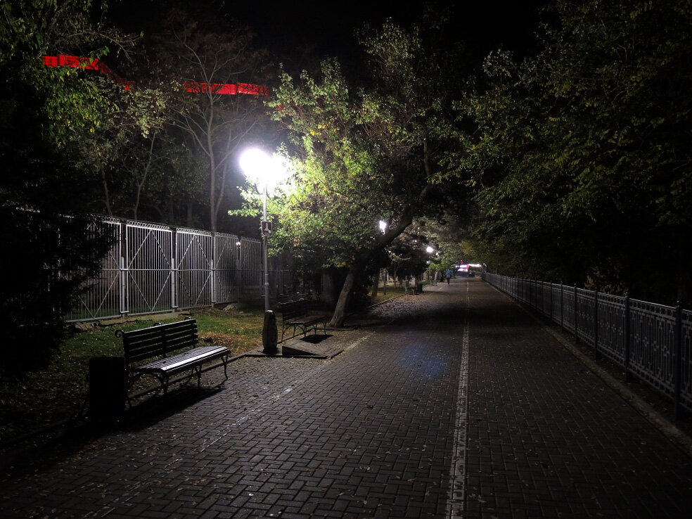 Ещё одна прогулка по вечерней Анапе осенью 2019 года. Вечером второго дня поездки прошёлся немного по набережной Высокого берега от морского порта до пляжа Малой бухты. Дальше не пошёл, потому что в этой части очень темно. Фотографировать было сложно. Самое яркое впечатление той прогулки - оригинальные фонари в форме паруса.