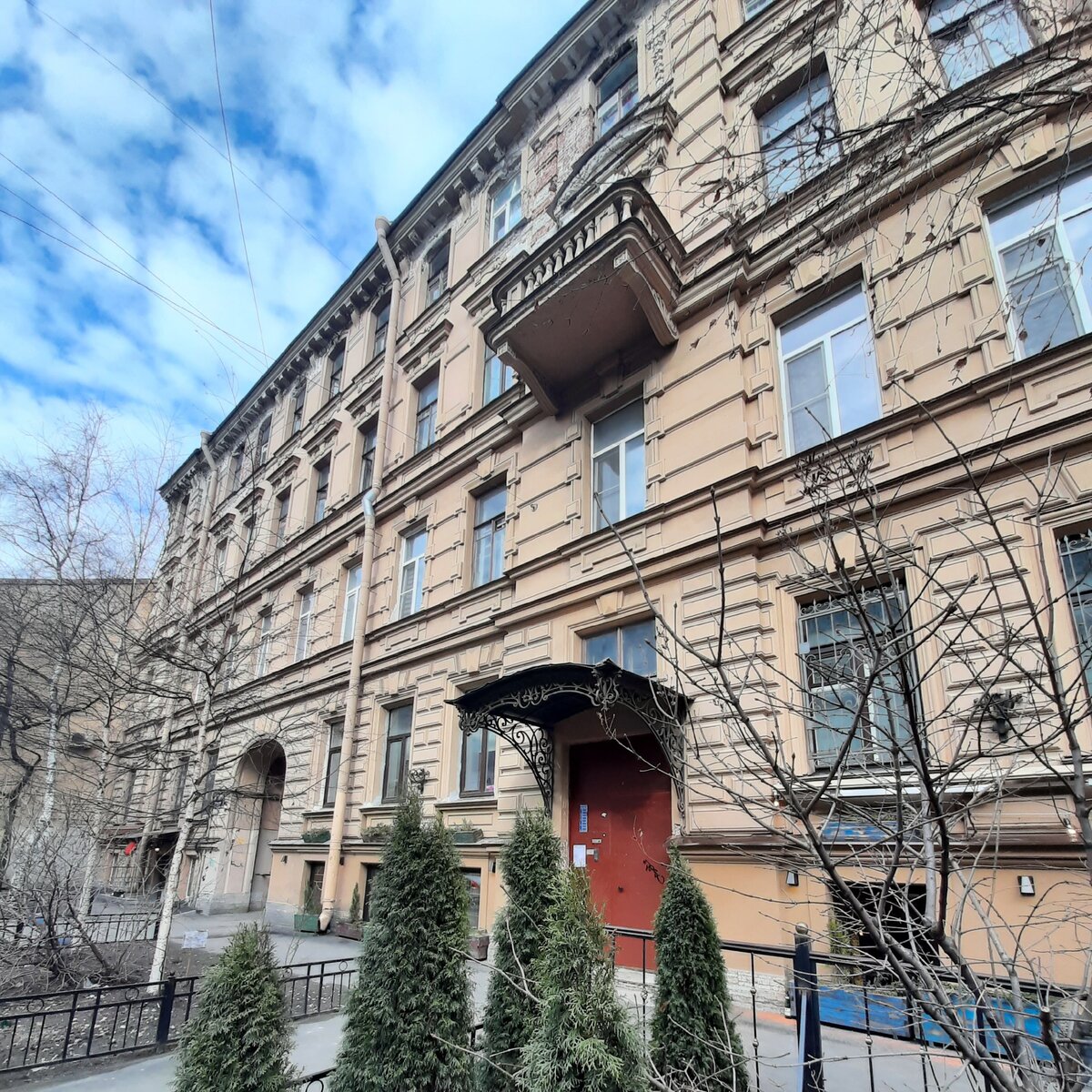 Доходные дома в Петербурге предназначались для людей с разным уровнем дохода. В пределах одного и того же дома могли быть и шикарные отдельные квартиры с анфиладой комнат, и маленькие клетушки, то что у нас сегодня называют эконом класс. Революция попыталась уравнять эту разницу, многие квартиры уплотняли, но получилось, что получилось. Хочу вам немного показать эту разницу на примере парадных доходного дома коммерсанта Ф. Ф. Шпринга на Васильевском острове. С парадной стороны здание выглядит очень неплохо, фасад явно подремонтирован. Да и в парадных с этой стороны все отлично: над дверьми красивые кованные козырьки, внутри сохранились печи, кованные перила и плитка. Но нам это сегодня не интересно, идем под арку в первый двор. Примечательно, что в обеих арках сохранились вот такие кованные ворота. Тут уже парадные поинтереснее, например, такие: Еще раз под арку и добро пожаловать в типичный двор-колодец. Расстояние между стен всего несколько метров. Эти ящички под окнами называются ле