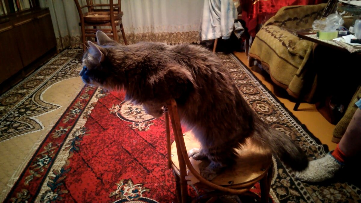 Муся любит смотреть телевизор и очень не любит когда трогают её личный стул, на котором она выросла. С нетерпением ожидаем когда она предъявит свои права на телевизор. Но тут есть сложность - за время присутствия Муськи в квартире, это уже второй телевизор.С самого своего соплячества, именно его она не смотрела.