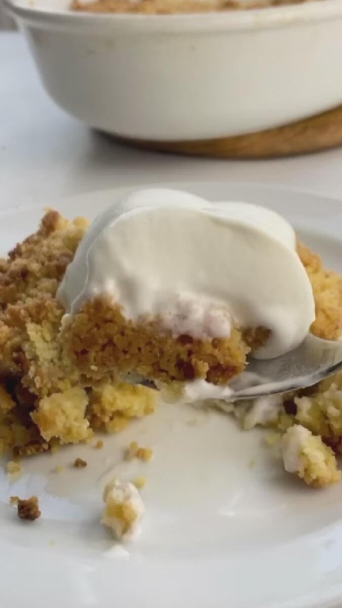 На дно формы выложи яблочную начинку, разровняй и присыпь ровным слоем крошки.