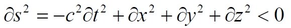 Уравнение означает, что скорость события всегда меньше скорости света c = 1. Графически уравнение тождественно поверхности (линии) касательных к геодезическим событий. Количество слагаемых в уравнении выбирается равным размерности пространства (не считая времени). Уравнение отражает обобщённое понятие светового конуса, то есть, и треугольника, и конуса, и сферы, и относится к геодезическим произвольной формы, к событиям, движущимся с ускорением.