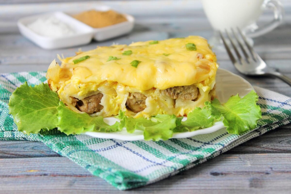 Выпекать запеканку из пельменей при температуре 200-220 градусов около 40 минут.