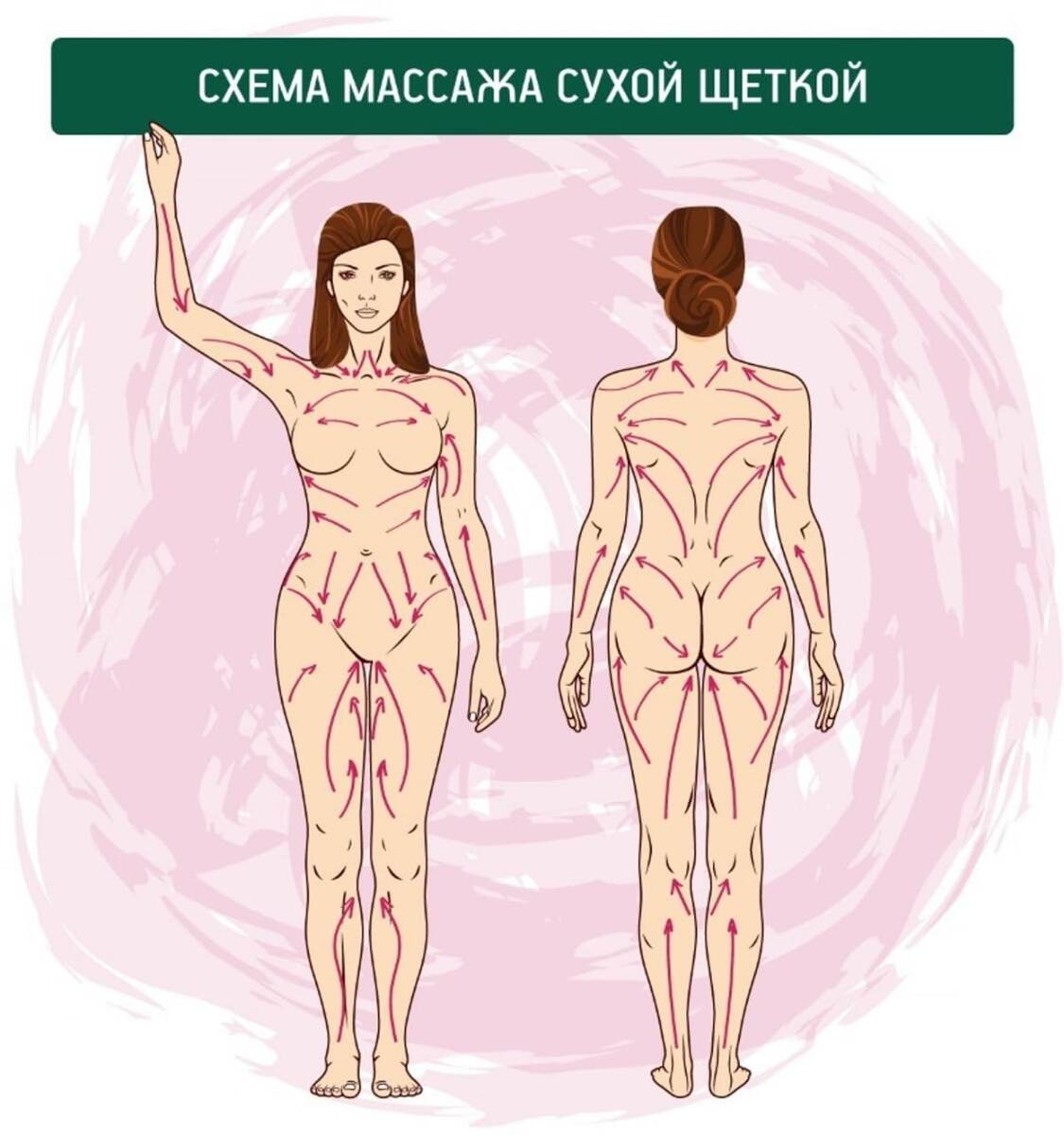Сухой массаж - это массаж тела при помощи специальной щетки - без масла или крема (схему движений прикрепила в карусели)