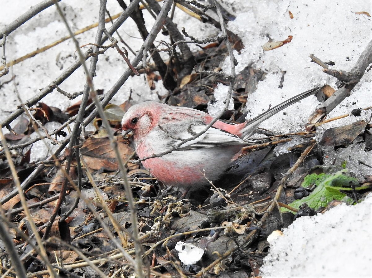 Сегодня у меня маленькая личная сенсация. Совсем недалеко от своего дома я встретила редкую и очень красивую птичку — урагуса. Иногда ее называют длиннохвостым снегирем или длиннохвостой чечевицей. Розовый птах с серебристо-белой сединой на голове, черно-белый длинный хвост. В первую секунду, увидев рядом с синицами мелькнувшую светлую длиннохвостую птичку, я подумала, неужели такое раннее появление трясогузки? Возможность встречи с урагусами мне даже не пришла в голову — ведь чтобы найти их, я ездила этой зимой в поселок Большой Исток, и нашла, правда, они прятались в высоком бурьяне и хороших кадров практически не осталось. Первым описал эту птичку известный ученый Петер Симон Паллас после своей экспедиции по Сибири в XVIII веке, но он дал ей латинское имя Loxia sibirica. Сейчас к роду Loxia относят только клестов, а в XVIII веке в него включали и других вьюрковых. Позднее Александр Кейзерлинг и Иоганн Блазиус пришли к выводу, что птица заслуживает выделения в отдельный род, и с конц