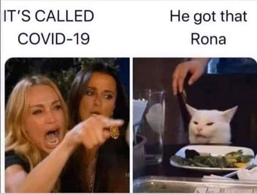 На 1-м месте у нас “Rona” или “Vid” (“The Rona” или “The Vid”), которые, как вы, вероятно, догадались, относятся к COVID-19. Большинство людей осторожно говорят о COVID, поскольку это, конечно, серьезная проблема, с которой мы все еще сталкиваемся, но “COVID-19” звучит слишком формально для использования в повседневной беседе с друзьями, плюс немного юмора-хорошее лекарство.