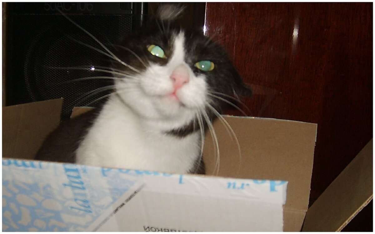 Нет, конечно, не подумайте, что я совершенно безразличен к обществу. Я даже проявляю определённое любопытство к незнакомым мне двуногим, которые иногда посещают моих кормильцев. Когда они садятся в кухне за стол, я обычно нахожусь рядом и слушаю о чём они говорят. Ничего интересного, я вас уверяю. Но по голосовым интонациям, я полагаю, обсуждаются глобальные катастрофы!