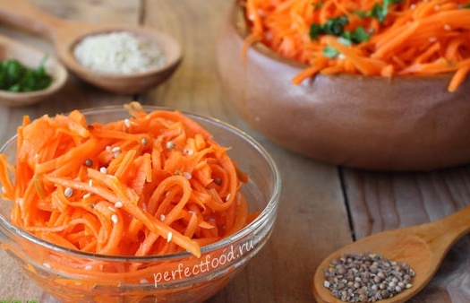 Не забудьте поделиться с друзьями рецептом ! Нас понадобится: На 1 кг. моркови: * сахара - 3 ст. л. , * соли - 1 ч. л. , *кориандра молотого - 1 ст. л. * уксуса - 2 ст. л. , * черного молотого перца - 0,5 ч. л. * щепотка красного молотого перца, * чеснока - 5 зубчиков, * растительного масла _ 100 - 150 гр. Морковь натираем на специальной терке, посыпаем сверху всеми специями, переминаем слегка её руками, выкладываем в миску, добавляем уксус, чеснок, пропущенный через чеснокодавку, и растительное масло (масло необходимо закипятить). Приятного аппетита! Пишите свои любимые рецепты. Ваше мнение важно для меня.