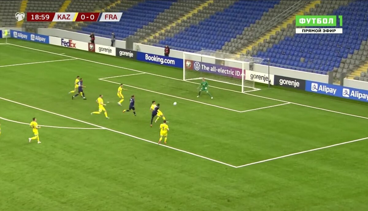 - На 44 минуте Андрей Малый отправил мяч в свои ворота, хотя 1 минуту назад вытащил мяч из своих ворот. Гризман подавал угловой и все французы пролетели через эту подачу, а Андрей Малый, проиграв борьбу с Полем Погба упал, и задев мяч головой отправил его в свои ворота. 2:0