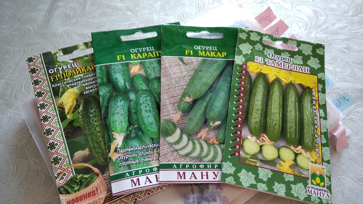 Все - гибриды. В пачках по 10 семян. Все семена хорошего качества. Я сею по 3шт. Всё как обычно, проливаю горячей водой, делаю углубление, кидаю семечко и закрываю влажной землёй. Сверху накрою плёнкой. Сею в кассеты, если понадобится, потом перевалю в больший объём...да, огурцы тоже можно пересаживать 😊 если аккуратно и сильно хочется, то можно всё 😄