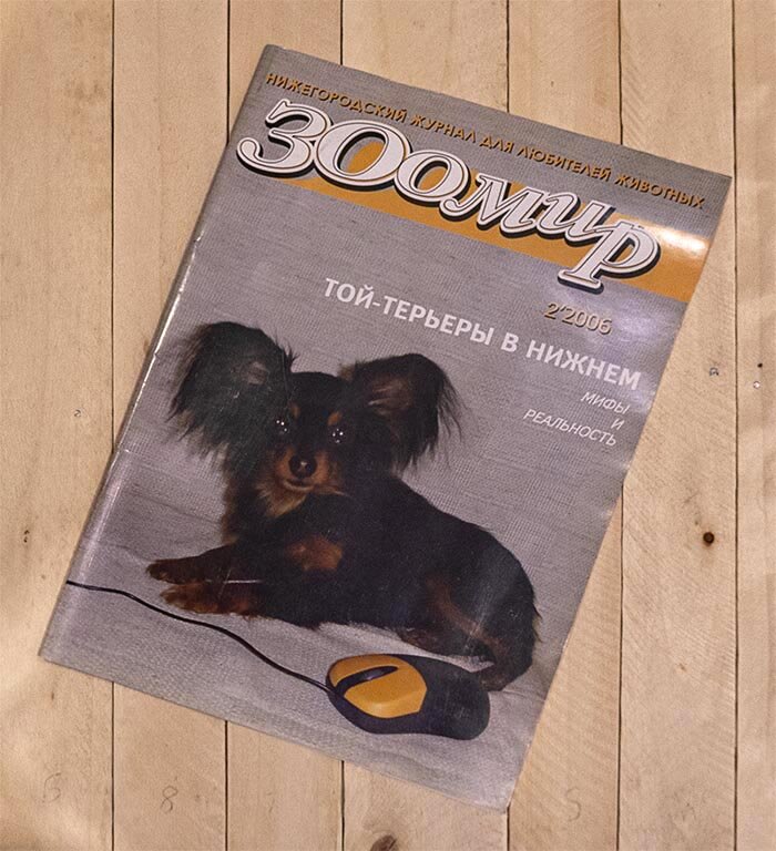 Эта статья хотя и была написана намного раньше, публикации дождалась только в 2006 году в клубном журнале «Зоомир» с одной единственной целью – познакомить, наконец, обывателей и собаководов Нижнего Новгорода с породой Русский той-терьер. Поэтому написано все просто, незатейливо, а местами забавно. Фото для обложки было сделано какой-то нелепой мыльницей, типа, Sony Cyber shot первого поколения, уже успевшей поизноситься. Да, такое было время, что поделать.)) Однако вспоминать его приятно, чтение вызывает улыбку, а история… это такая штука, которую не перечеркнешь, остается только бережно ее хранить.