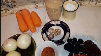 Для Плова: Утка - 1 шт Рис - 500гр Лук репчатый -500гр Морковь -500гр Чеснок -2-3 головки Изюм, чернослив, курага -по 70гр Соль -3 ч л (по вкусу) Пряности - смесь для плова, или: черн. перец + зира (1,5 ч.л.)
