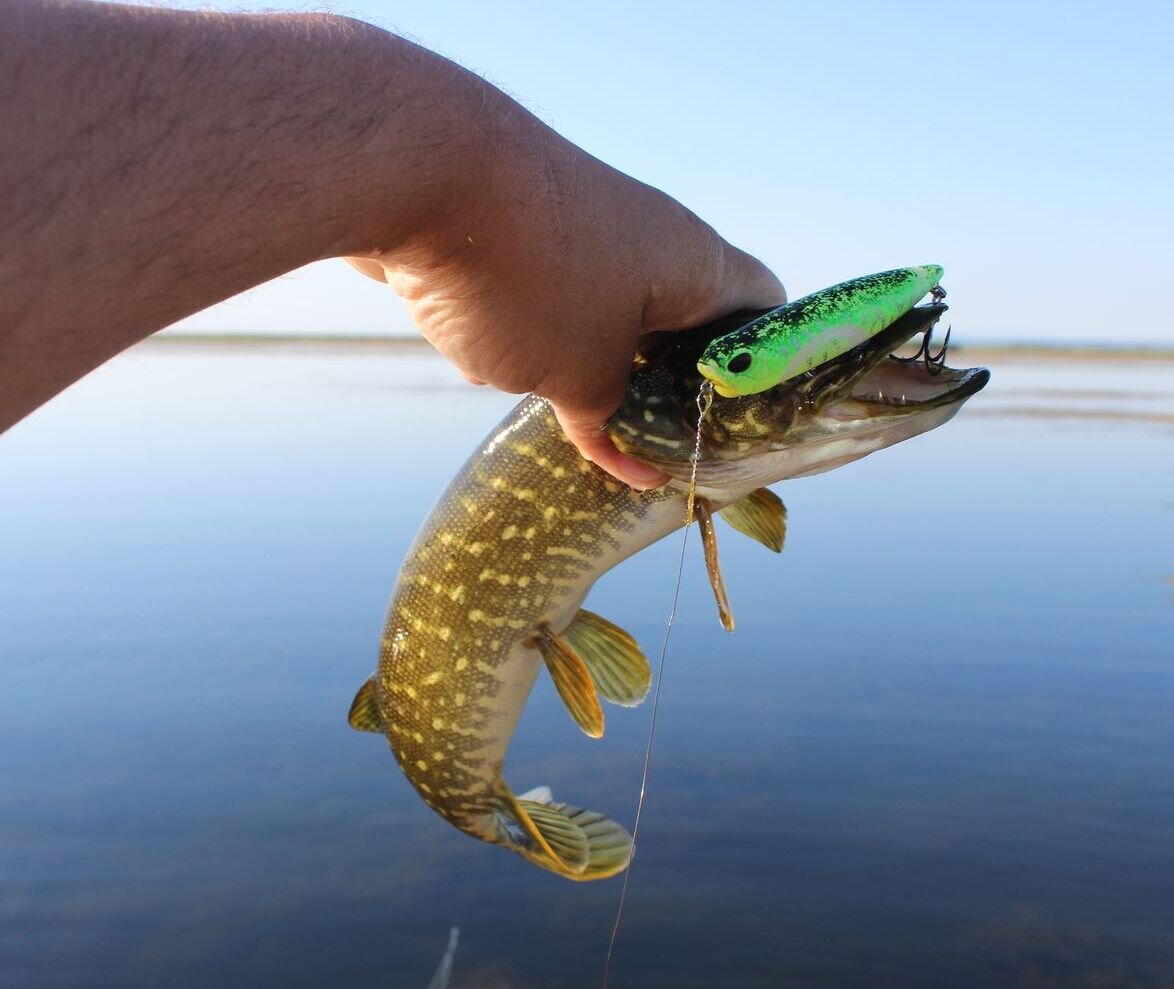 Удача приходит к мастерам! После второго заброса на вертушку мой товарищ взял щучку на 1,2 кг. Все очень этому удивились, так как никто в этой заводи щук не ловил. На том утренняя рыбалка и закончилась.