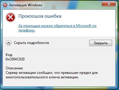 При активации Windows 7 Вашим ключом у Вас выходить ошибка 0xC004C020 - По какой причине произошла данная ситуация и как ее исправить?