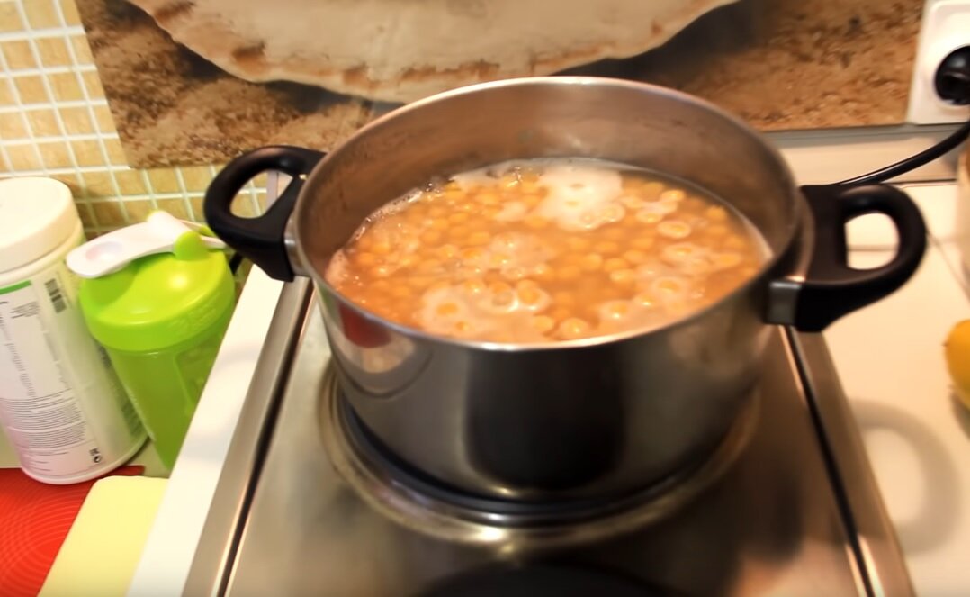 После того как нут полностью разбухнет, нам понадобится обычная кастрюля и вода для варки. Процесс варки происходит на минимальном огне в течение 1-2 часов до полной готовности нута. Затем нужно отделить бобы от жидкости.