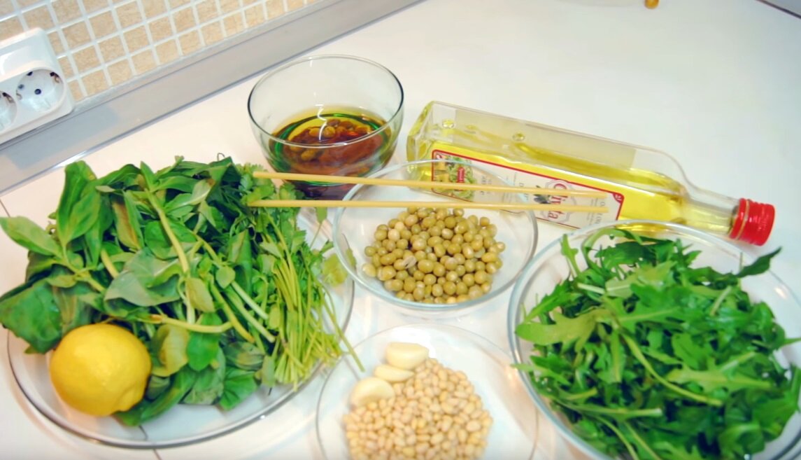 Паста считается исконно итальянским блюдом. В Италии можно встретить несколько сотен разновидностей этого прекрасного блюда. Более того, в каждом регионе используют собственную уникальную рецептуру. Паста стала популярной несколько сотен лет назад и сегодня является визитной карточкой страны. Сегодня я буду готовить простой, но очень вкусный рецепт пасты Песто. Изысканный соус с традиционными ингредиентами дополняет блюдо и делает его потрясающим. Классика итальянской кухни в фирменном исполнении прямо у вас на столе! Это блюдо ценится по всему миру, про пасту складывают легенды и поют песни. Паста обязательно должна быть в вашей книге рецептов. Для приготовления итальянской пасты нам понадобятся следующие ингредиенты: · итальянская паста – 500 грамм; · вяленые томаты – 100 грамм; · руколла – 50 грамм. Для соуса Песто: · базилик – 50 грамм; · петрушка – 15 грамм; · зеленый горошек – 120 грамм; · кедровые орешки (обжаренные) – 40 грамм; · чеснок – 3 зубчика; · лимон – 1 штука;