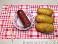 Продукты (на 3 порции) Картофель (сорта овальной, продолговатой формы) - 600 г (3 шт.) Колбаса копчёная (с салом) - 200-250 г