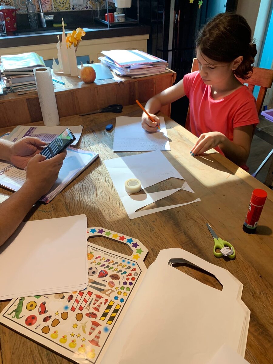 В этом учебном году Валюше задают меньше заданий на дом, чем в прошлом, но они стали гораздо более творческими и интересными. Большую часть из них она выполняет сама, а я фотографирую с телефона ее работы и выкладывают на платформу школы.