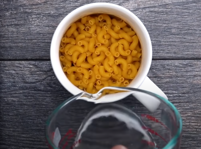Берём 1/2 стакан макарон, добавляем в него 1/2 стакана воды и щепотку соли. Отправляем в микроволновку на 2 - 3 минутки.