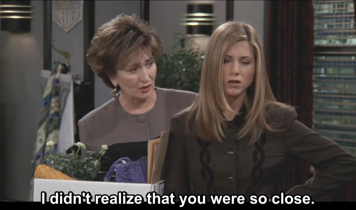Сегодня мы рассмотрим один случай из сериала "Друзья". 4 сезон 9 серия, в конце серии Рейчел не получает обещанное ей повышение по работе, потому что её начальница Джоанна умерла.