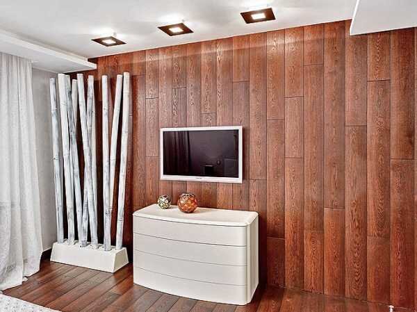 Между тем, совсем отказываться от идеи интерьера с деревянной отделкой только лишь из-за цены материала не стоит. В качестве аналога дорогому паркету можно использовать вышеупомянутую паркетную доску. Как для пола, так и для стен такой вариант более чем подходящий.