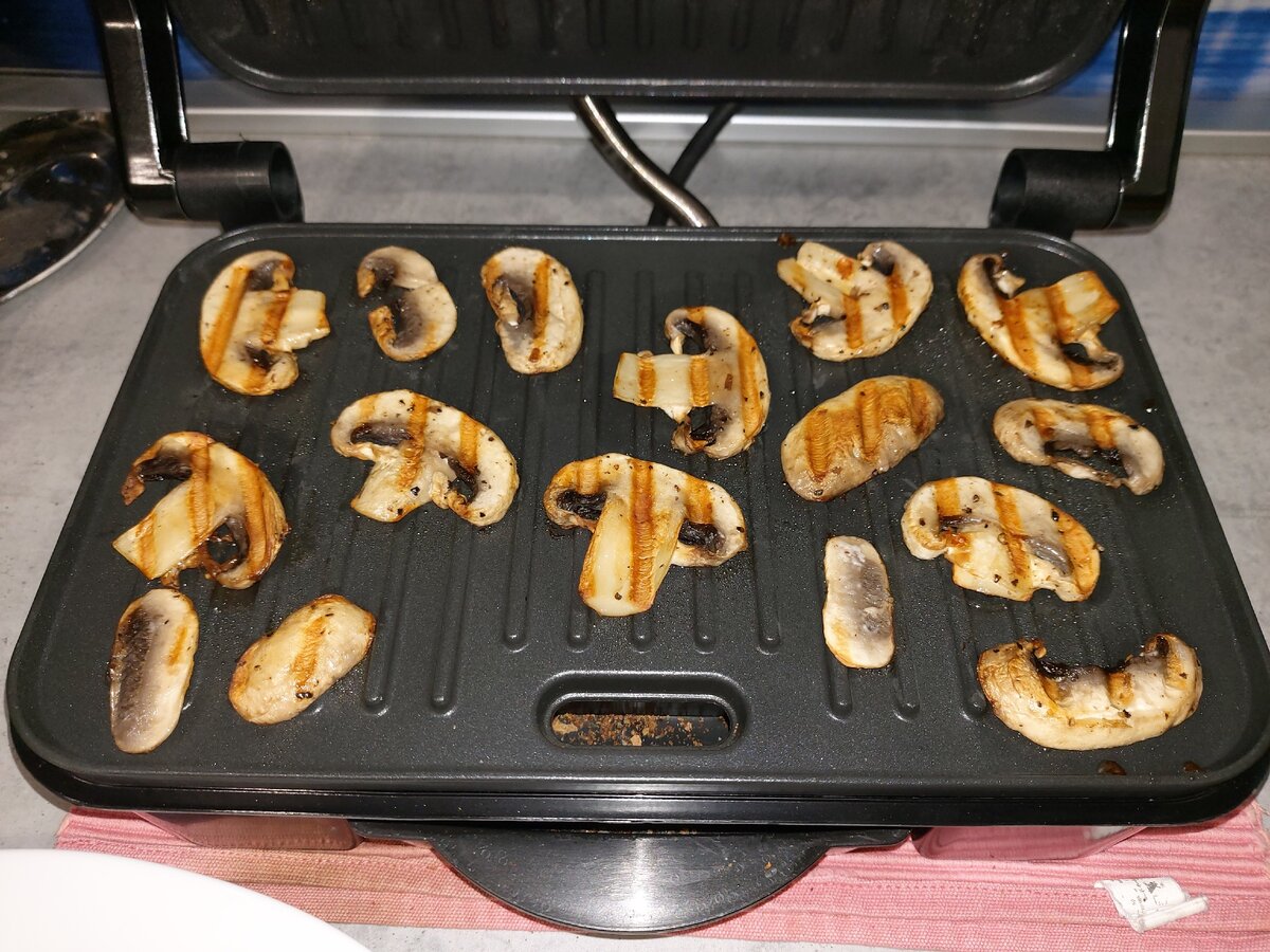 3. Выкладываем на пресс-гриль и жарим 3-5 минут.