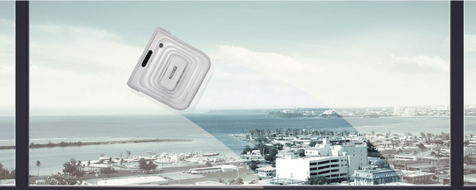 Благодаря своей форме и слаженной работе датчиков, мойщик подъезжает вплотную к рамам, не оставляя неочищенных участков. А за счет наличия сенсора перепада высот, Win A100 можно использовать для очистки безрамных стекол.