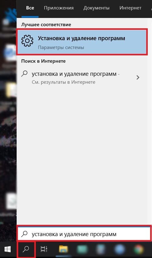 - Зайдите в поиск на панели задач => введите в строку поиска Установка и удаление программ => в этом меню найдите позицию OneDrive и нажмите "Удалить".