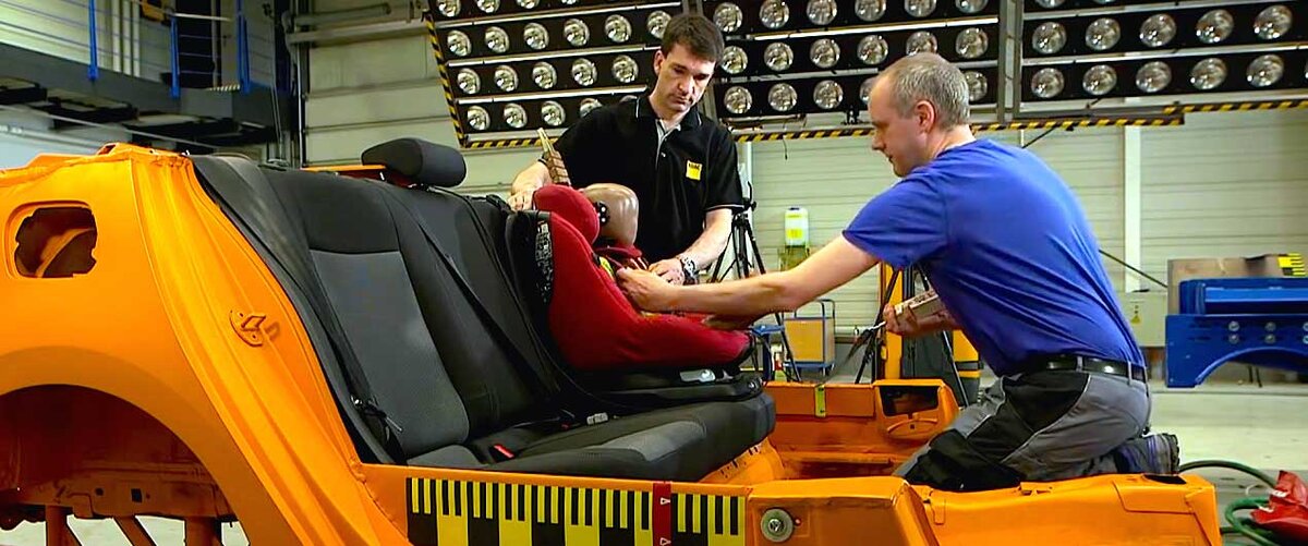 Любой водитель в наше время слышал о краш-тестах для детских автокресел. В целом это испытание детского кресла на уровень безопасности и способность защитить пассажира в аварийной ситуации. Но далеко не все представляют себе, как на самом деле проходят подобные тесты. Краш-тесты детских автокресел проводятся в специально подготовленной лаборатории, где в деталях воспроизводятся возможные случаи аварий на дороге. Например, для моделирования фронтального удара применяют закрепленный на тележке кузов Volkswagen Golf VII, движущийся со скоростью 64 км/ч. Последующее замедление имитирует деформацию кузова при аварии. Разными способами добиваются эффекта начала столкновения, проникновения двери в салон автомобиля и других опасных ситуаций. Затем оцениваются повреждения автомобиля и вред, причиненный здоровью водителя и пассажиров. Естественно, в качестве всех участников ДТП выступают не живые люди, а специальные куклы. Такие манекены снабжены различными датчиками, показывающими степень ущер