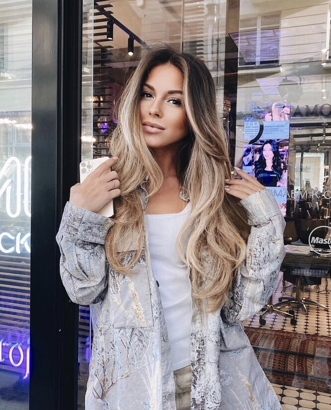 Давайте снова представим звезду блондинкой. На мой взгляд, тёмный цвет идёт ей больше, а как считаете вы?