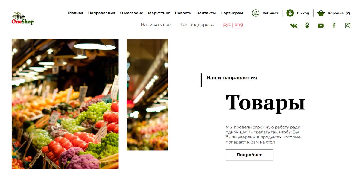 На главной странице вы сразу же увидите категорию ”Товары”, где представлены продуктовые наборы. Наведите курсор мыши на кнопку ”Подробнее” и кликните на нее.