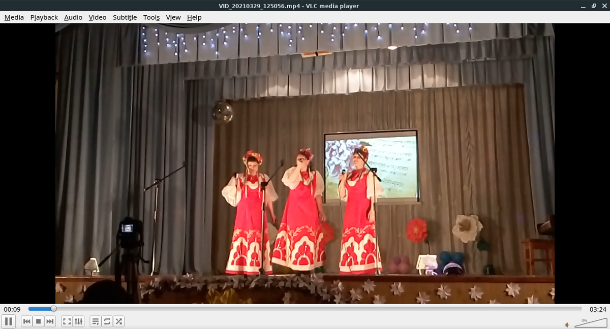 В общем в полном куматозе концерт начали... Когда выходить,как выходить... Ну пытались мы у себя в комнатухе прорепетировать выход, но там то все другое... В общем, все как обычно..Через сто оп... Да еще костюмы эти... Одна песня закончилась, надо ломиться в комнату ,это платье с мокрого тела как то стягивать, другое натягивать, пуговицы все застегнуть, венок на башку прицепить... Ложки куда бросила на предыдущем номере отыскать и схватить...