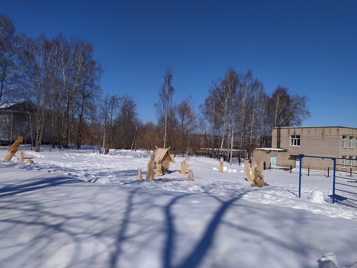 Это парк деревянных скульптур по мотивам сказок и мультфильмов.