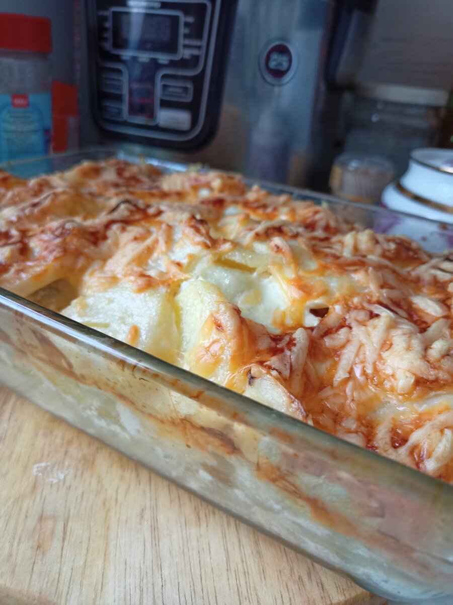 Отправляем в духовку где-то на 45-50 минут при температуре 190 градусов. Чтобы не пригорело, можно на дно формы налить немного воды, но сметана и майонез все равно дадут жидкость, поэтому воду добавляйте в крайнем случае, если вдруг низ начинает пригорать, у меня так было с моей старой духовкой. Так же можно готовить под фольгой в течение 40 минут и затем 10 минут без неё. Ориентируйтесь по готовности картофеля, он должен был очень мягкий.